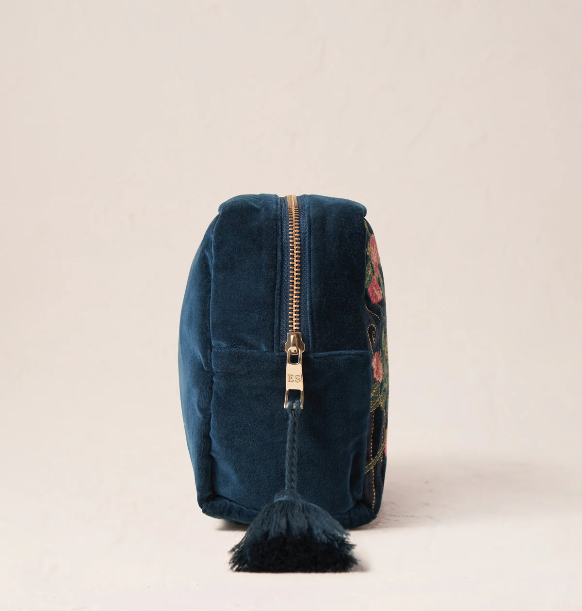Be travel-ready at all times with a waterproof lining, zip tassel and inner pockets, perfect for organising your lotions and potions, home or away. Embroidered with two majestic jaguars surrounded by luscious rainforest, brought to life with pops of pink, vivid hues and delicate gold threads.